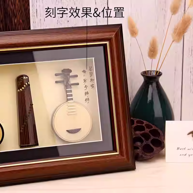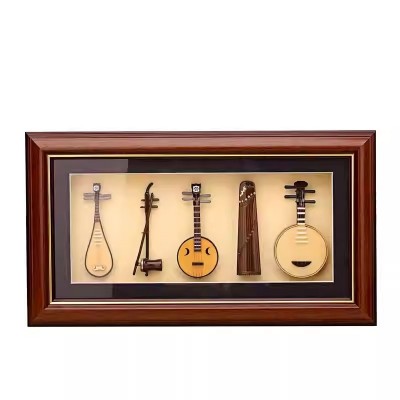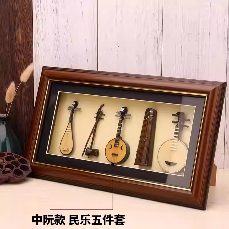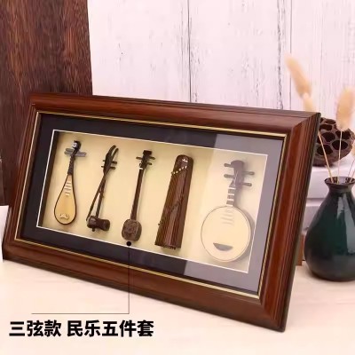 小古筝模型中阮三弦竹笛五件套二胡琵琶相框摆件迷你中国传统礼物